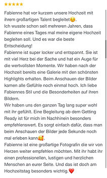 Ich bin Fabienne und das Gesicht hinter der Kamera. Ich fotografiere schon seit meiner Kindheit gerne und habe mir damit als Beruf einen großen Traum erfüllt.